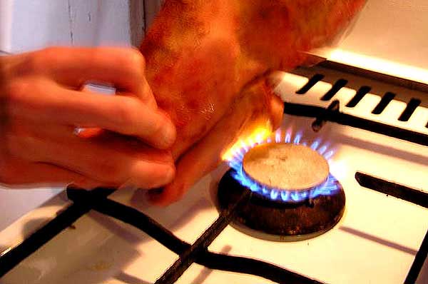 Elsõ komolyabb mûveletként a vágóhíd munkáját kell befejeznünk, mivel némi arcszőr a helyén maradt. Tartsuk hát a disznót a gázláng fölé, és pörzsöljünk! Ha van lángszórónk, használjuk, de kerüljük a dezodor és az öngyújtó együttes használatát, kicsit elnyomja az ízét a fokhagymának.